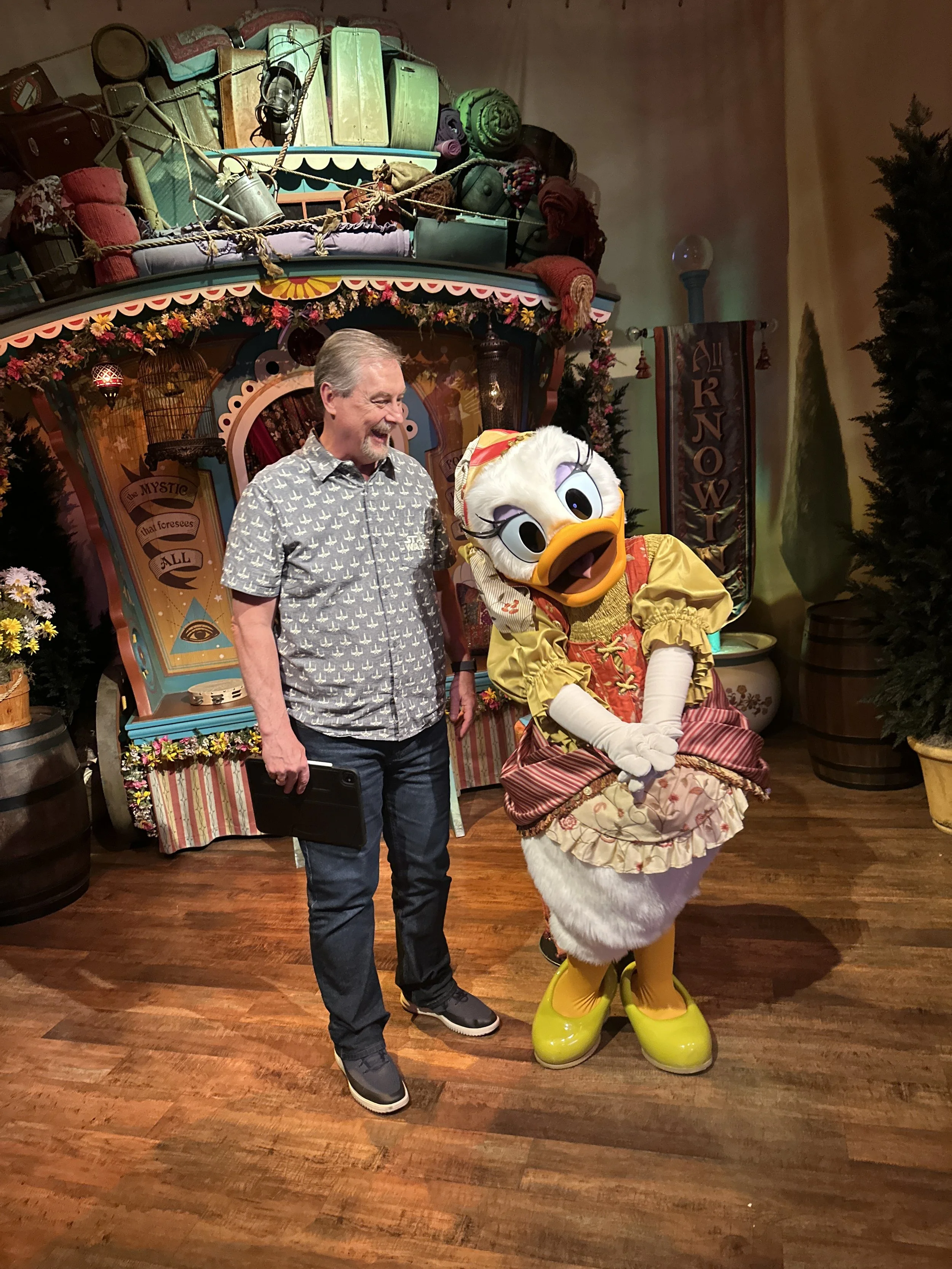 A digital painting of Daisy Duck & Minnie Mouse, in the Magic Kingdom at Walt Disney World in Orlando Florida.